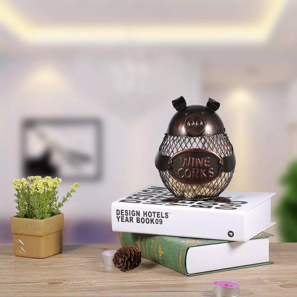 Lovely Piggy Wine Cork Container Home Decoration Metal Sculpture