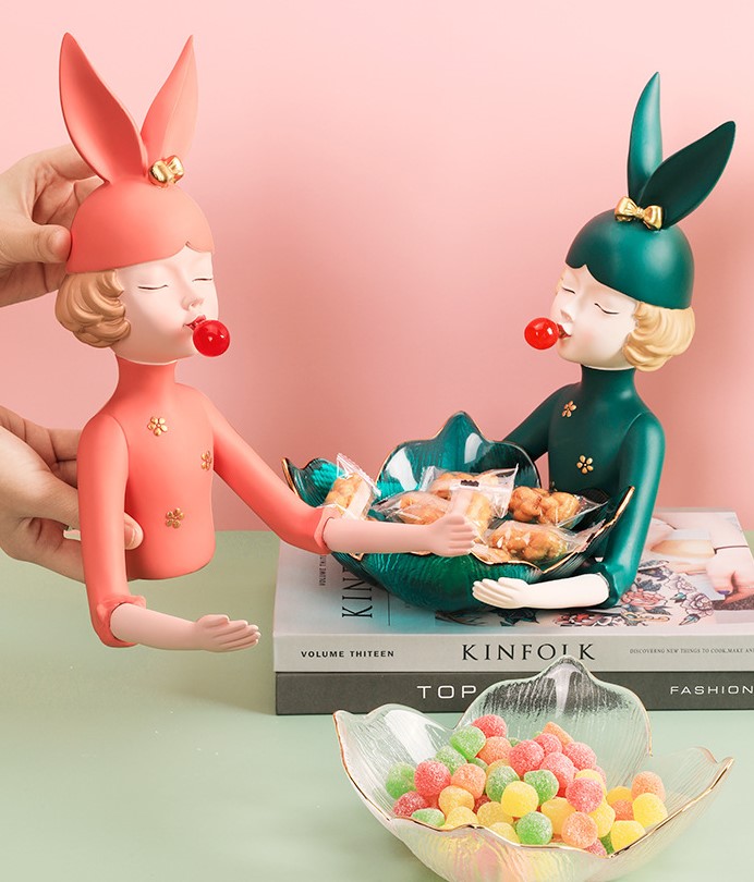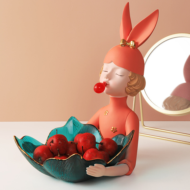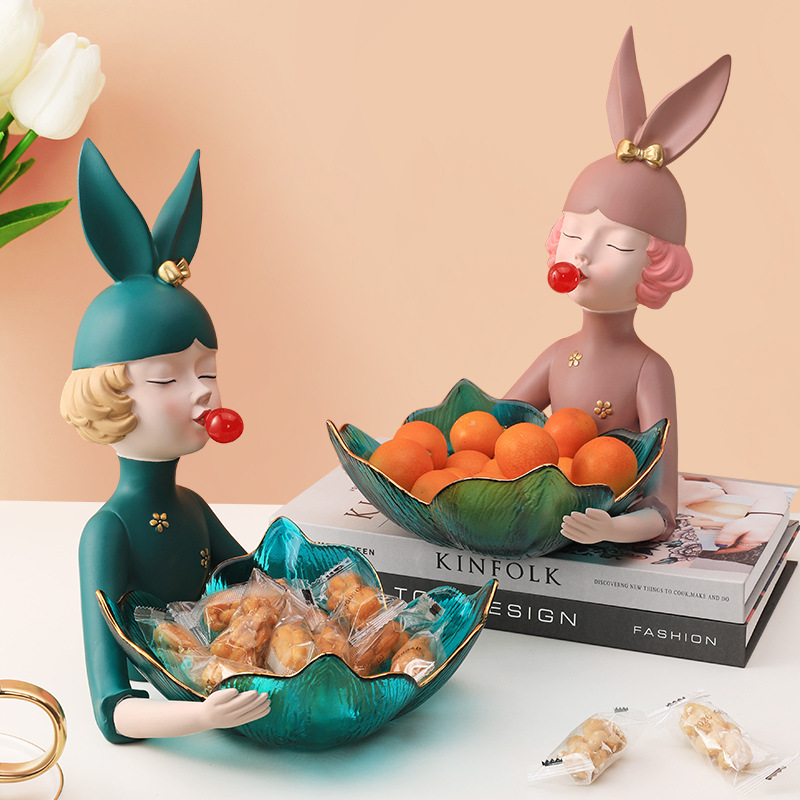 Cute Girl Statue Home Decor Fruit Dish Figurines Resin Moden Storage Cute Ornaments