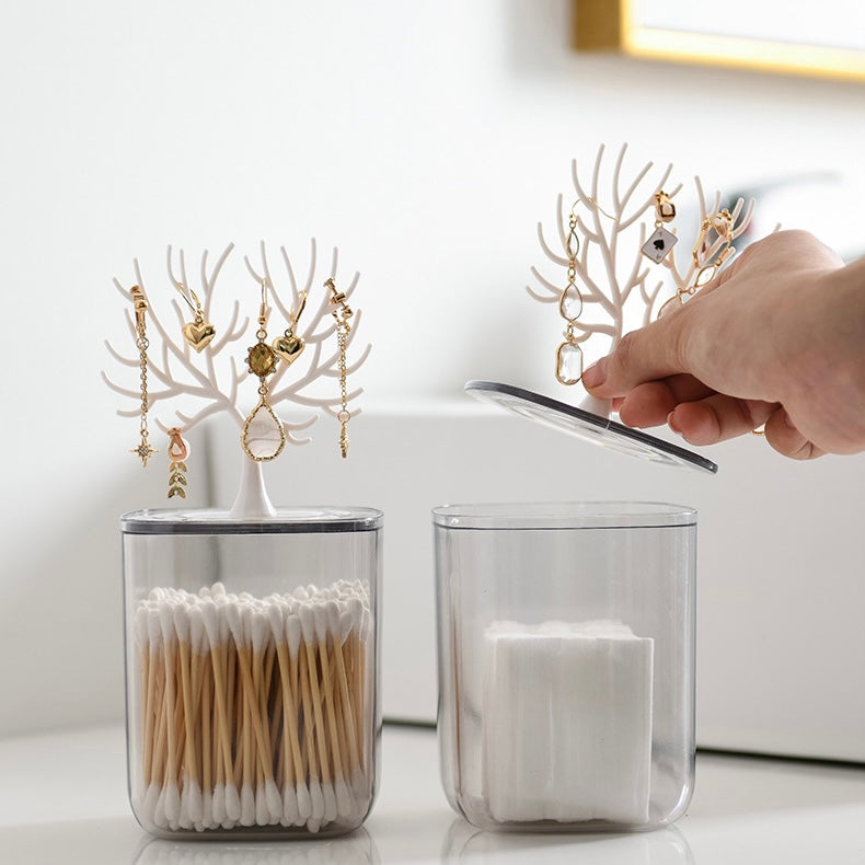 2pcs Cute Transparent Pine Tree Cotton Swabs Facial Wipe Storage Box & Accessories Holder