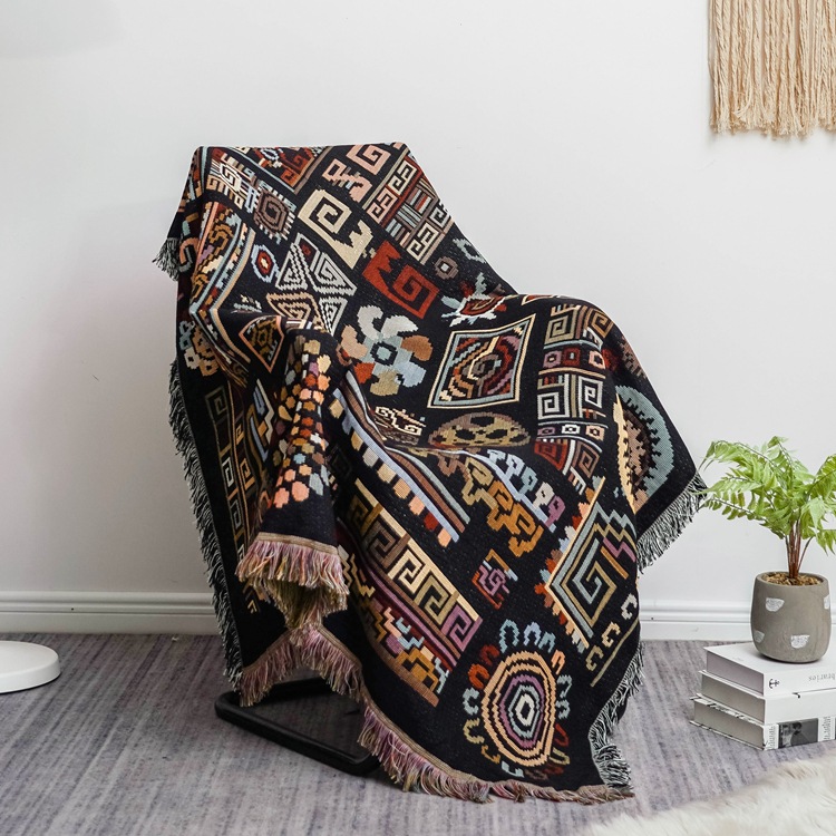 Bohemian style double-sided Jacquard knitted individuality Carpet Air Conditioning Blanket