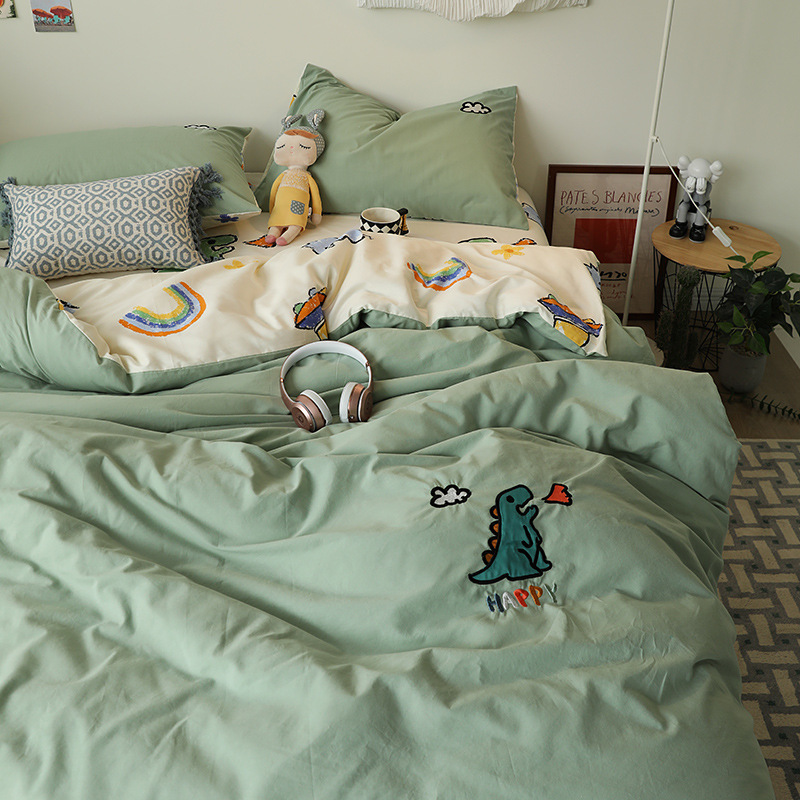 4pcs Cartoon embroidered fire-breathing dragon Bedding Set