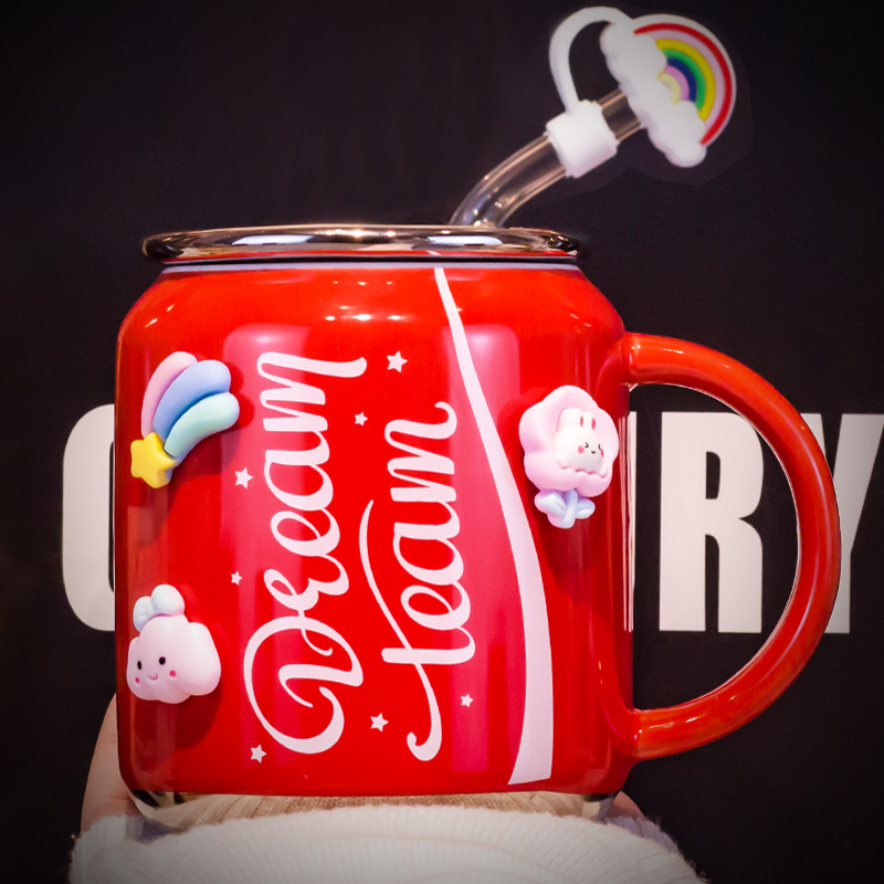 Material: ceramics; Capacity: 430ml; Mug with lid and straw