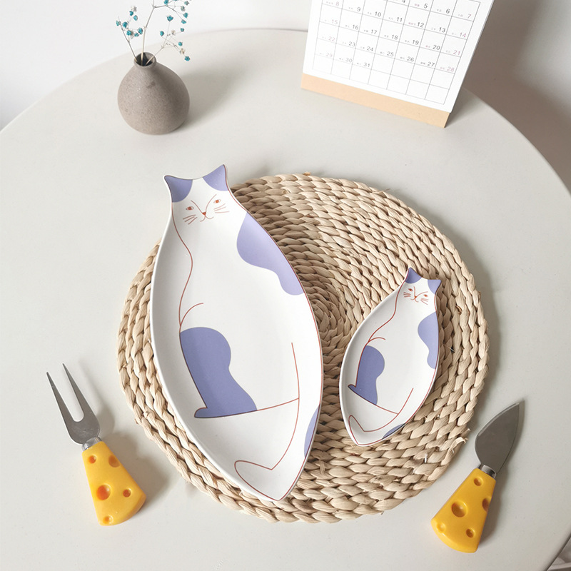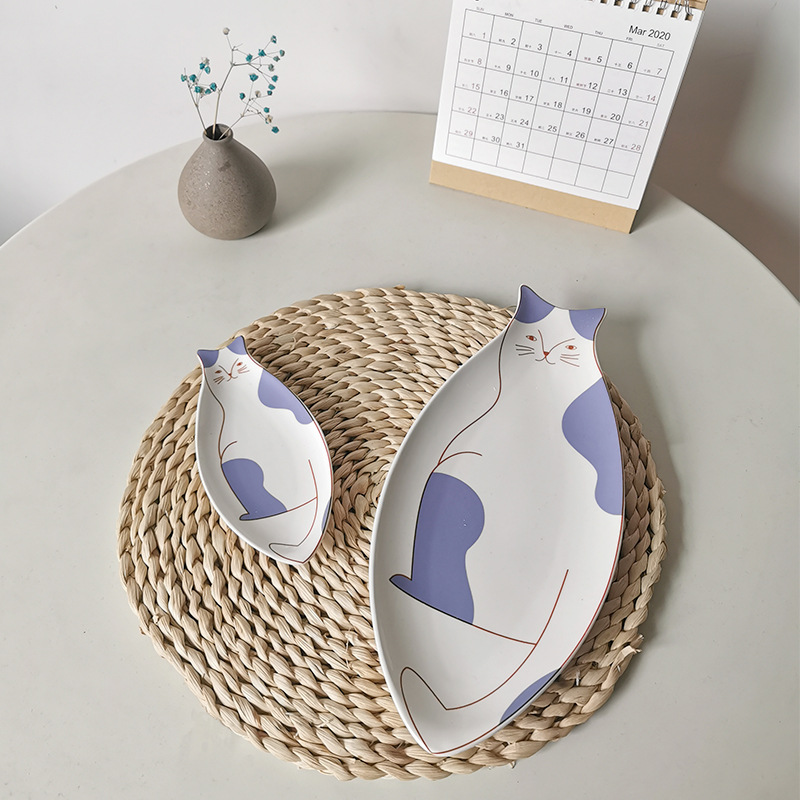 Material: Ceramics Set: big cat - 27.5*12.5cm; small cat - 15*7cm