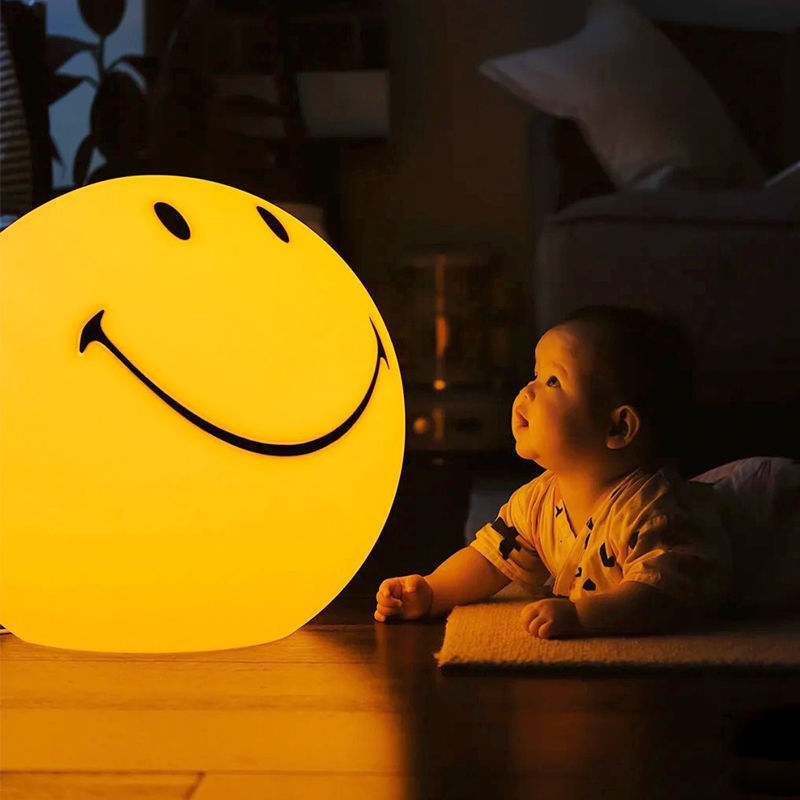 The XL Smiley Lamp is the happiest roommate you could have! This joyful smiling lamp shines a cozy, warm glow and can be placed anywhere you like; he'll fit by your bedside, on display in the living room or as a smiling colleague in your (home) office.