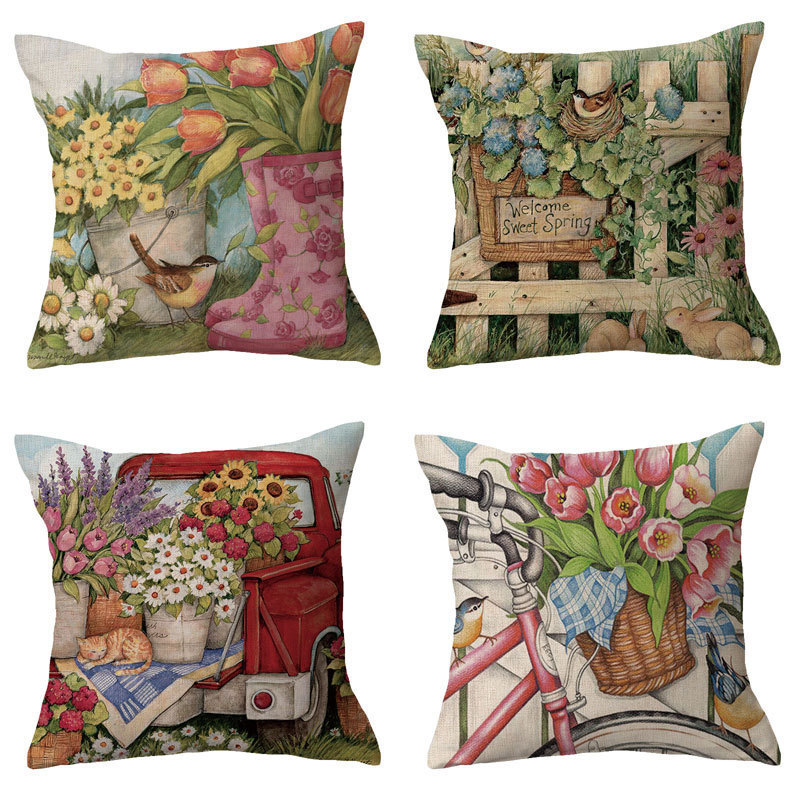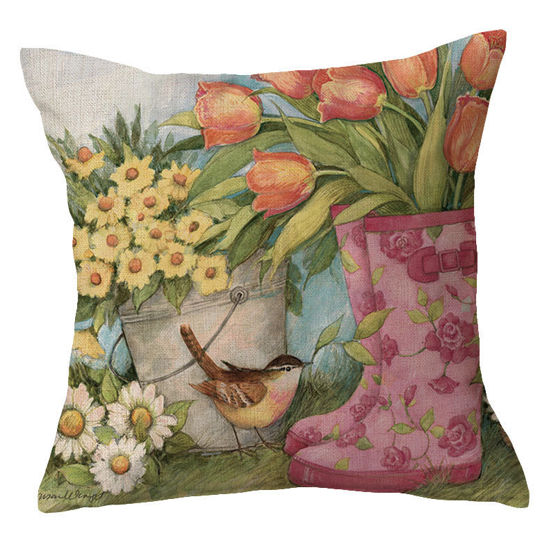 Vintage Floral Linen Cotton Cushion Cover