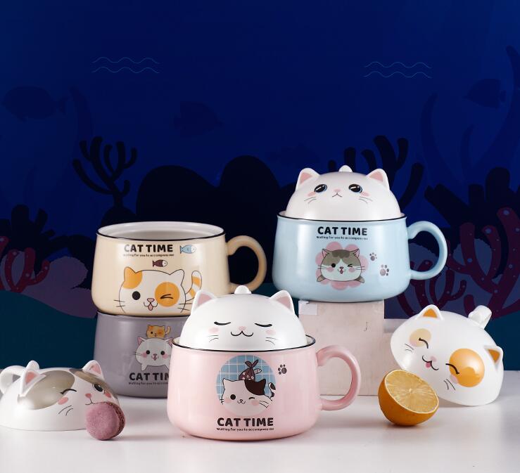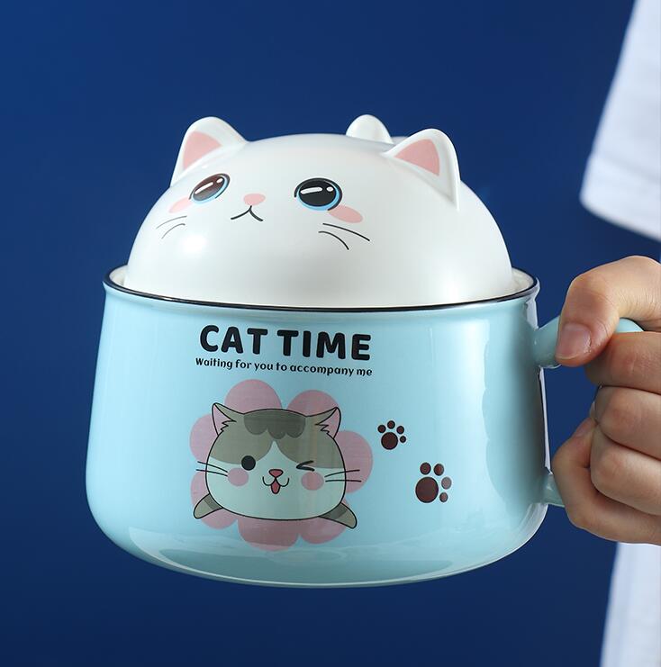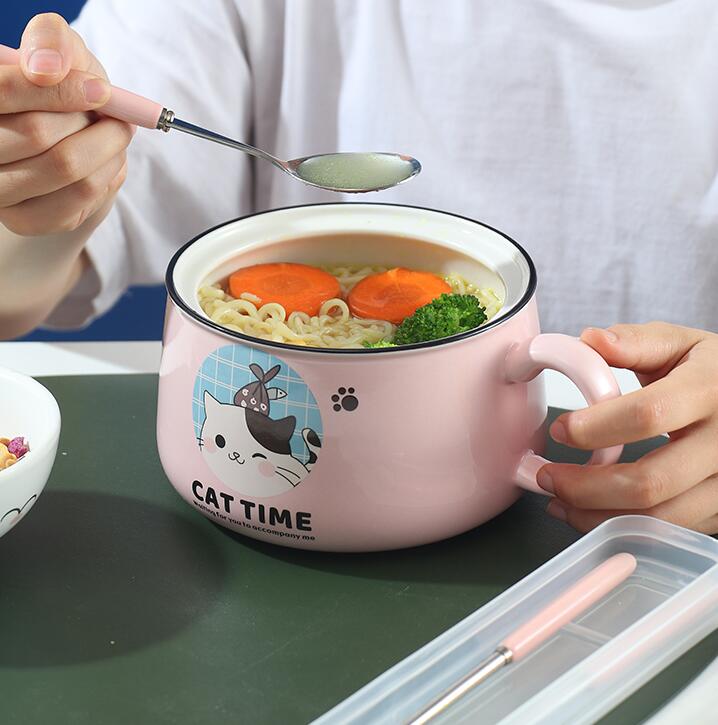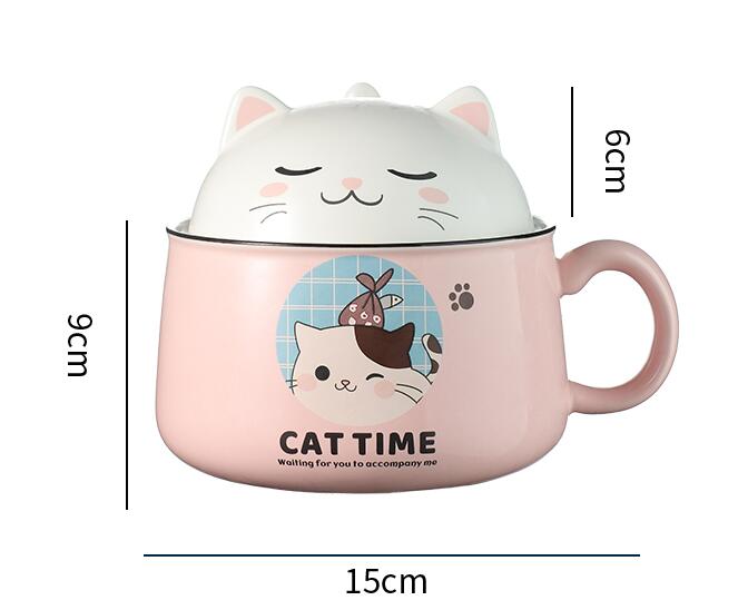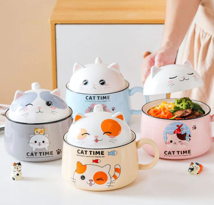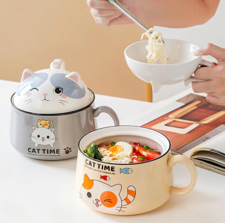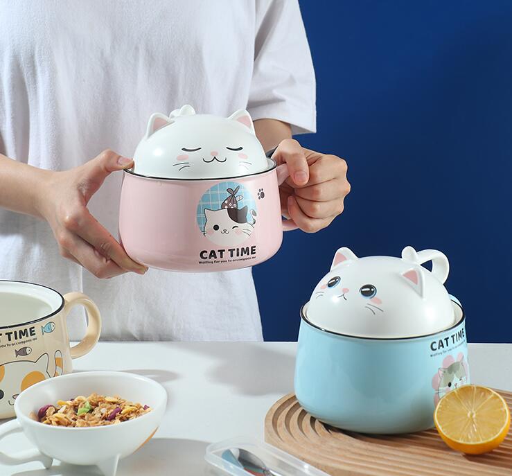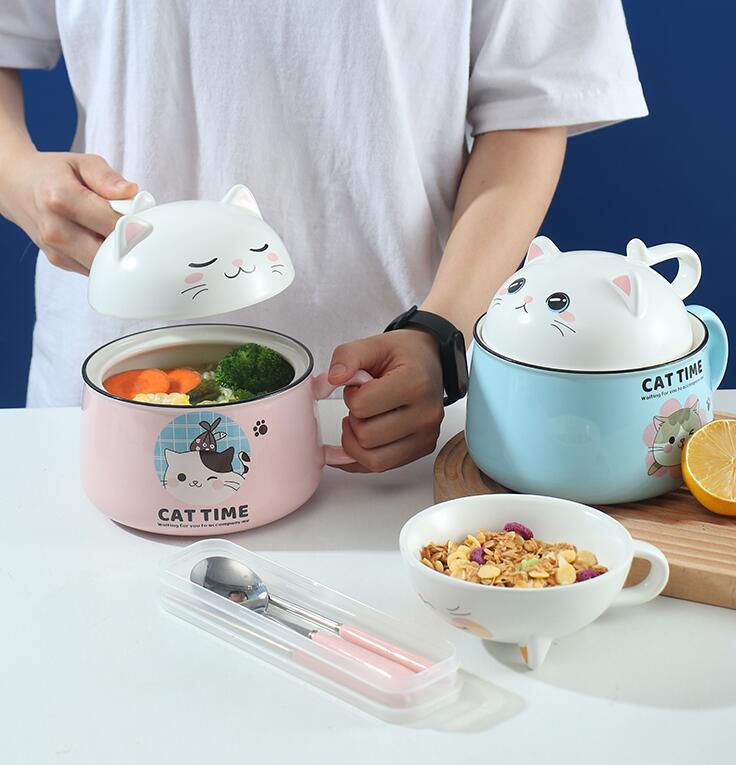Kawaii Cat Ramen Noodle Bowl With Lid
