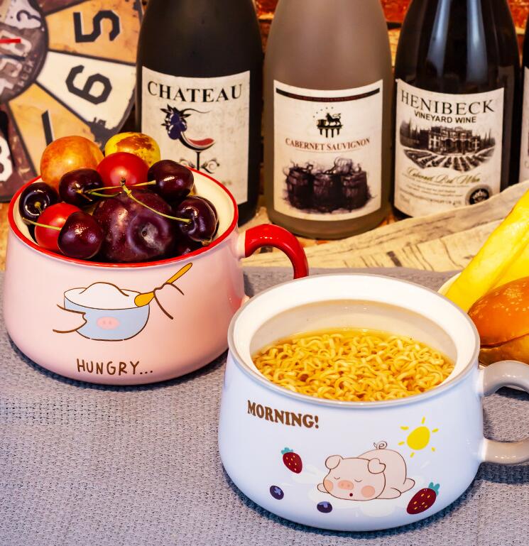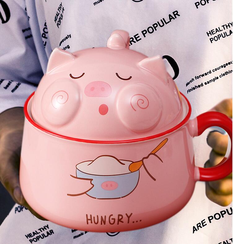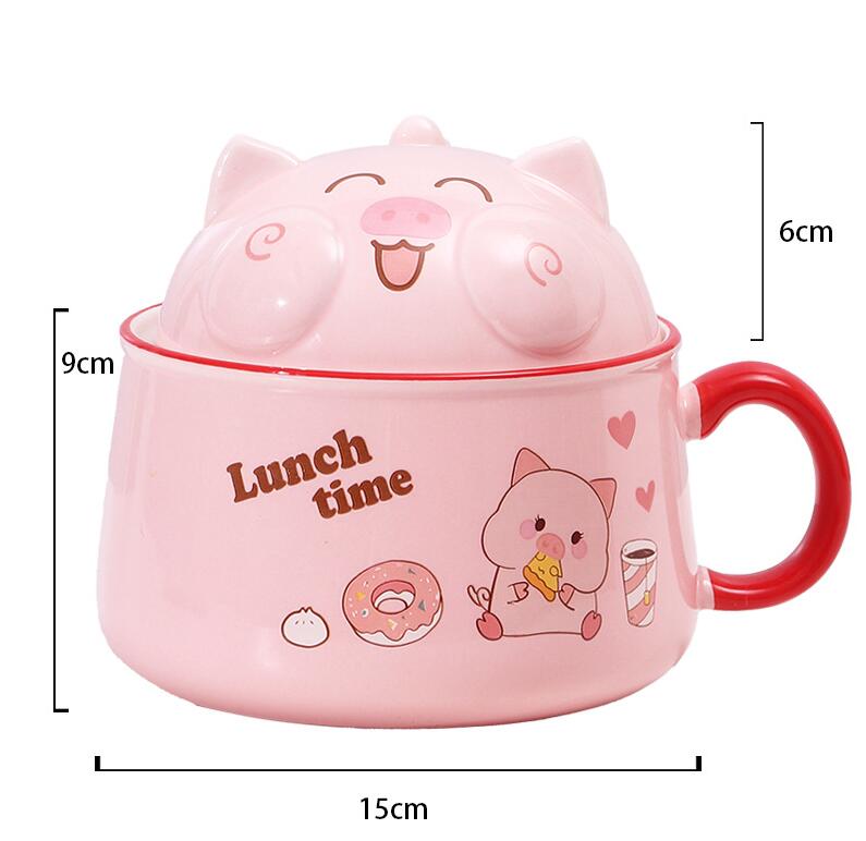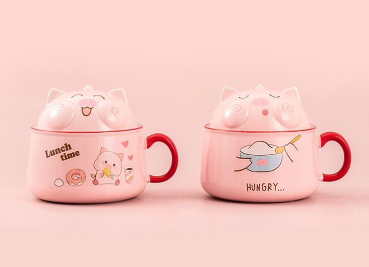 Kawaii Piggy Ramen Noodle Bowl With Lid