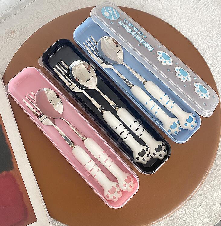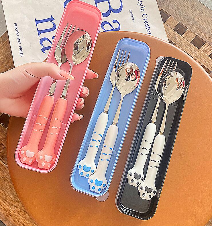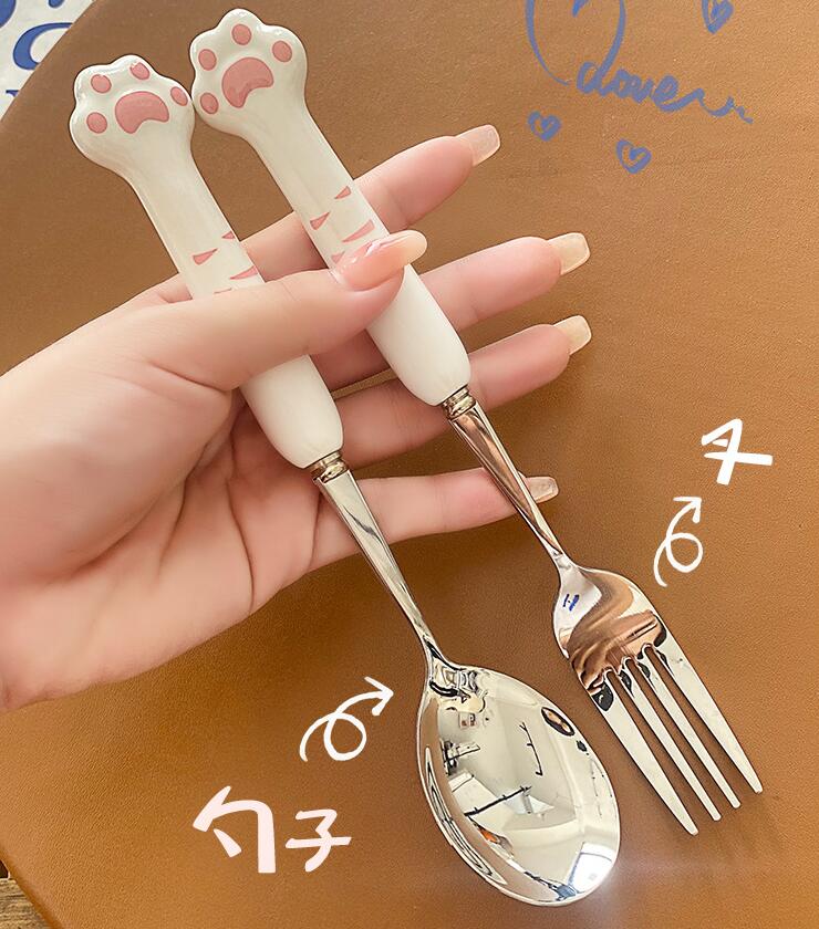 2pcs Stainless Steel Cat Paw Spoon And Fork