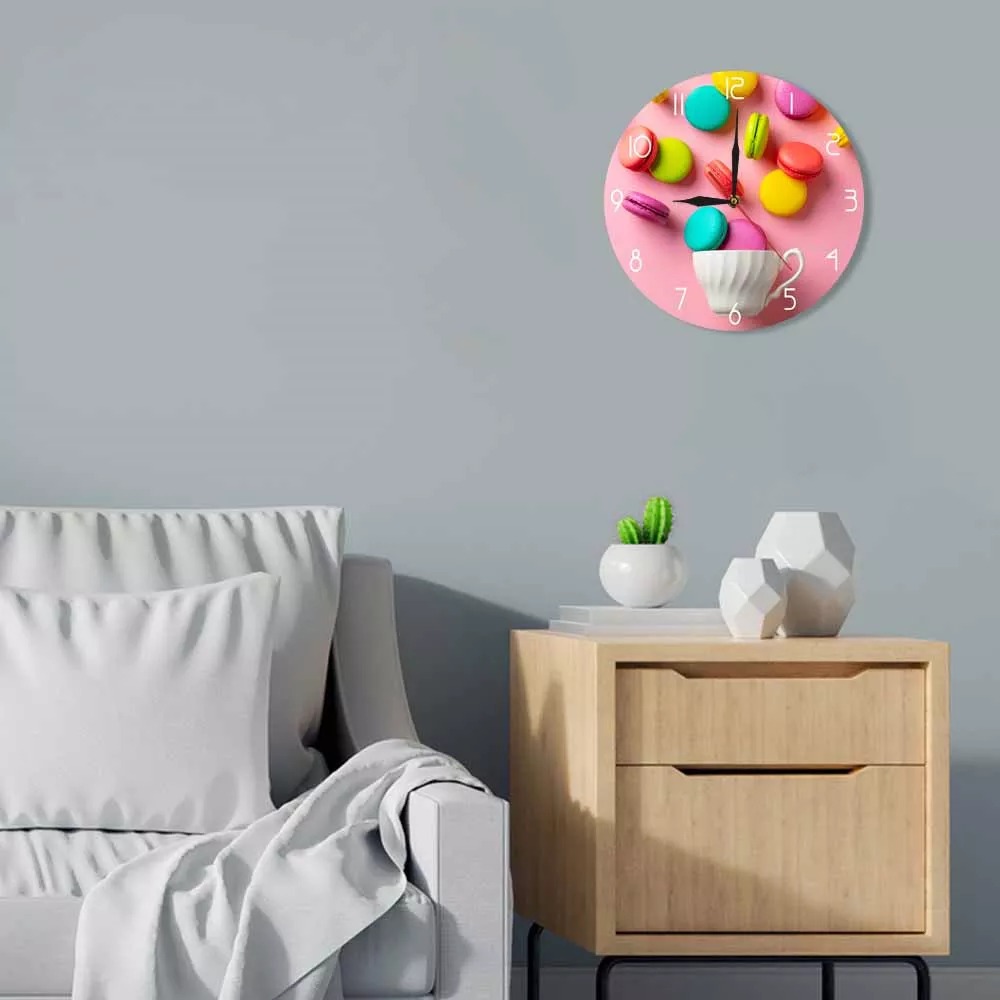 Colorful Macaron Dessert Printed Acrylic Wall Hanging Clock Kitchen Decor