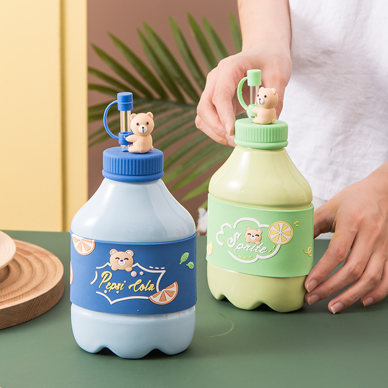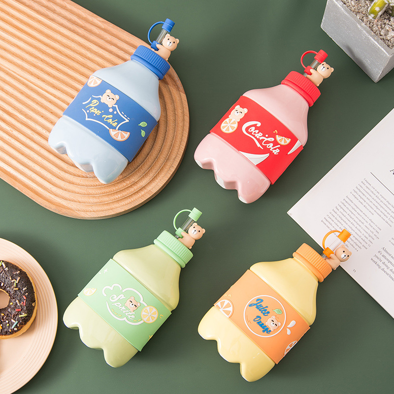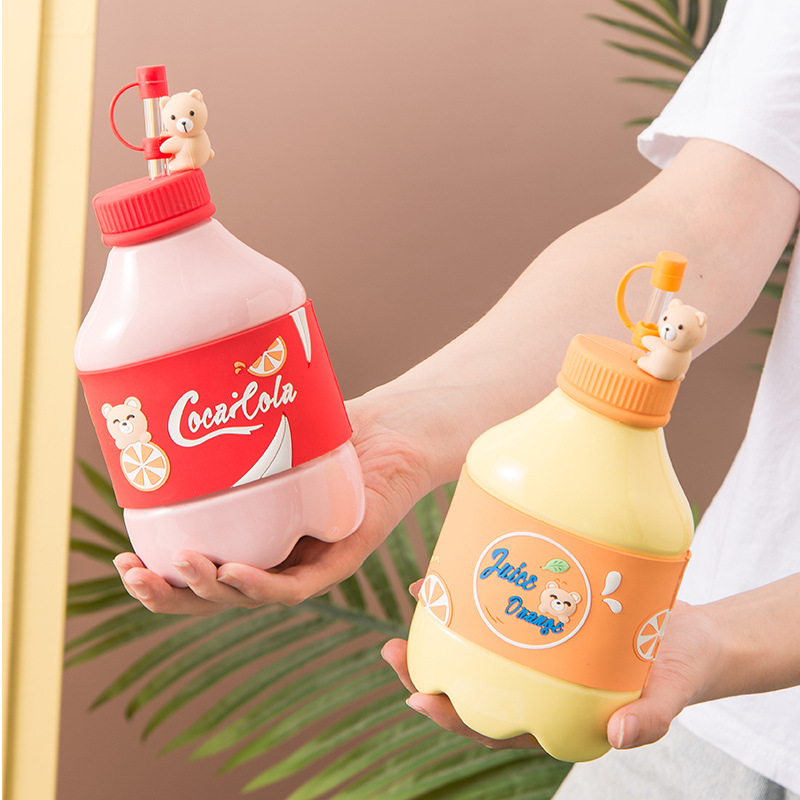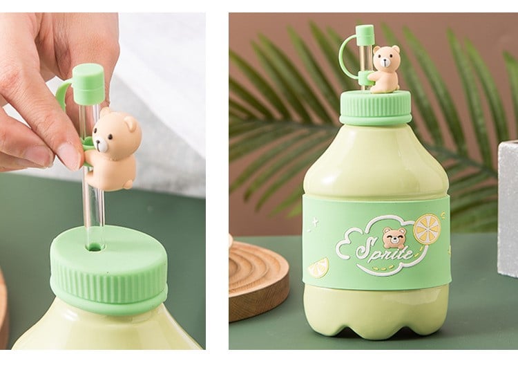 Cute bear beverage bottle milk cup with straw