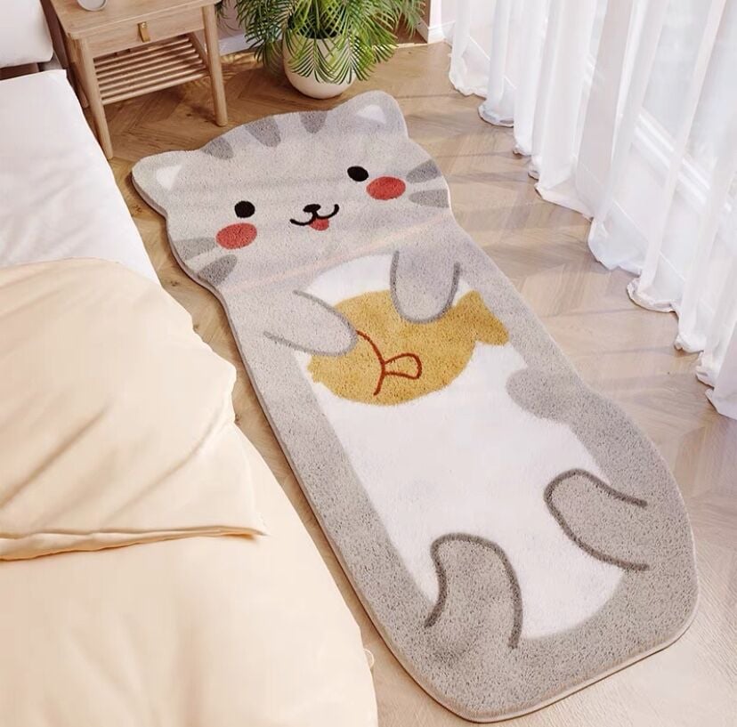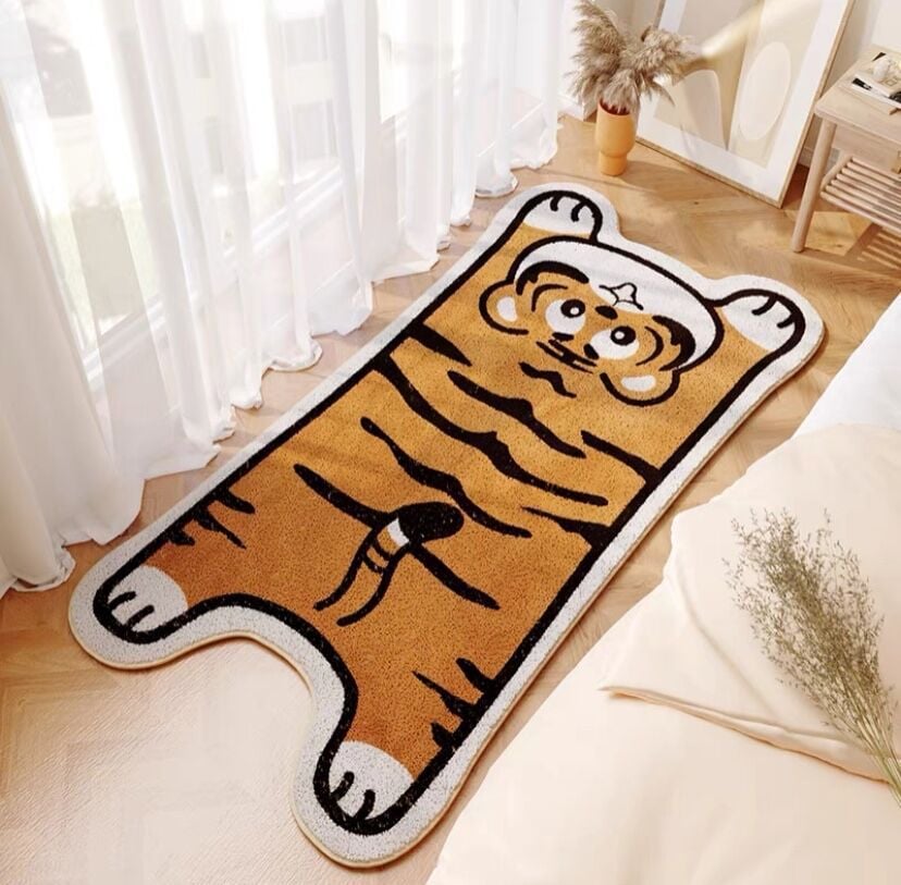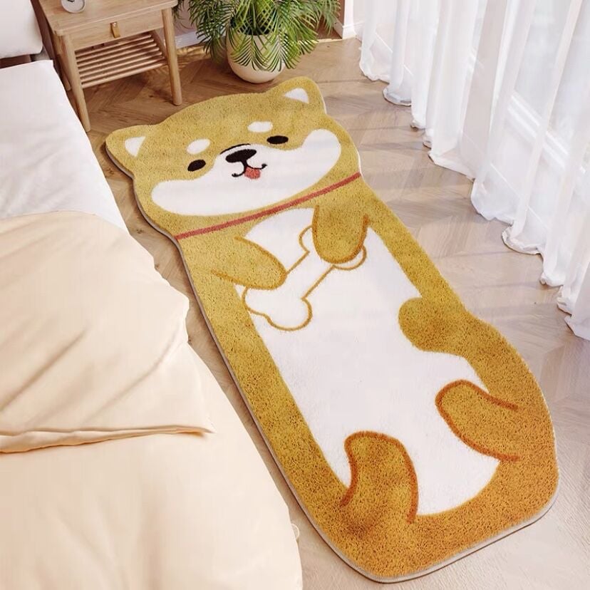 Animal cat corgi tiger imitation cashmere long bay window non-slip floor mat