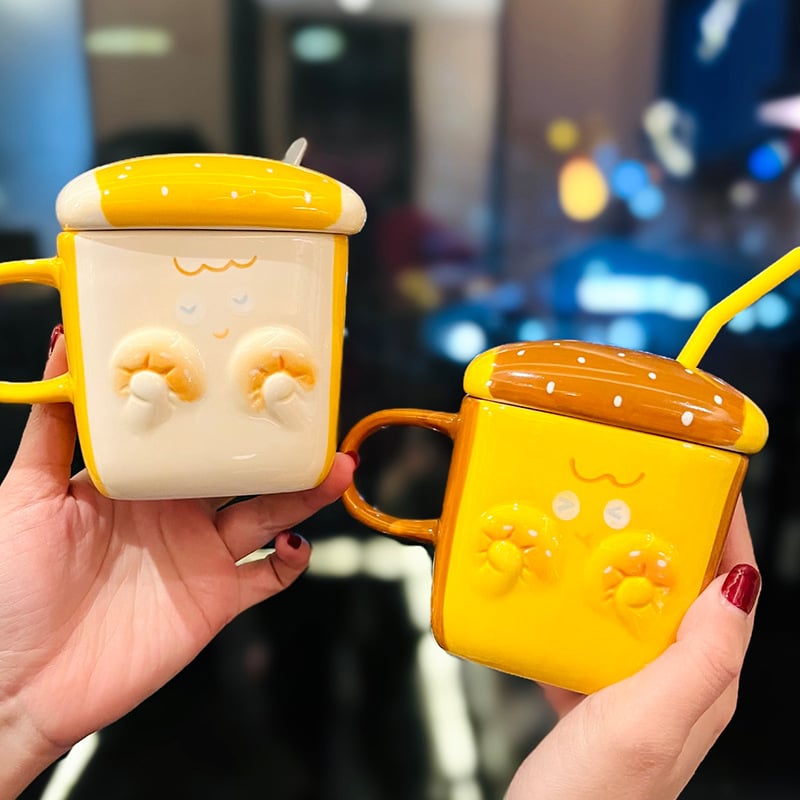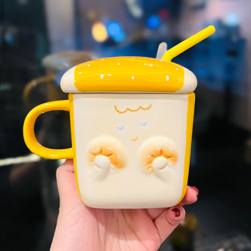Material: ceramics; Capacity: 380ml; Mug with lid and straw