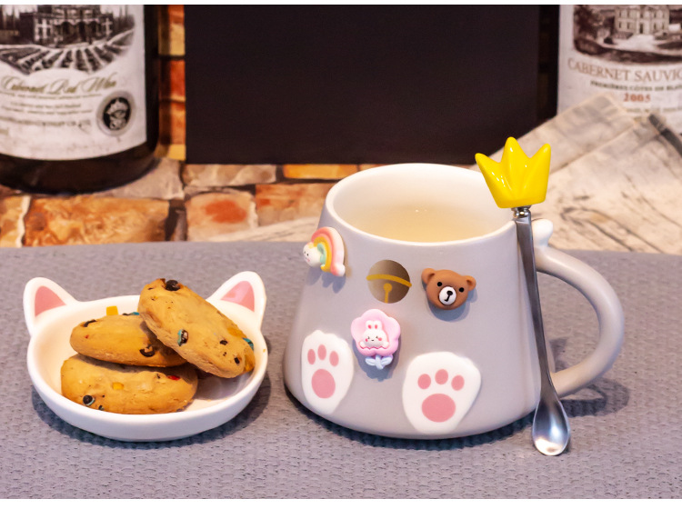 Material: ceramics; Capacity: 400ml; Mug with lid and stickers