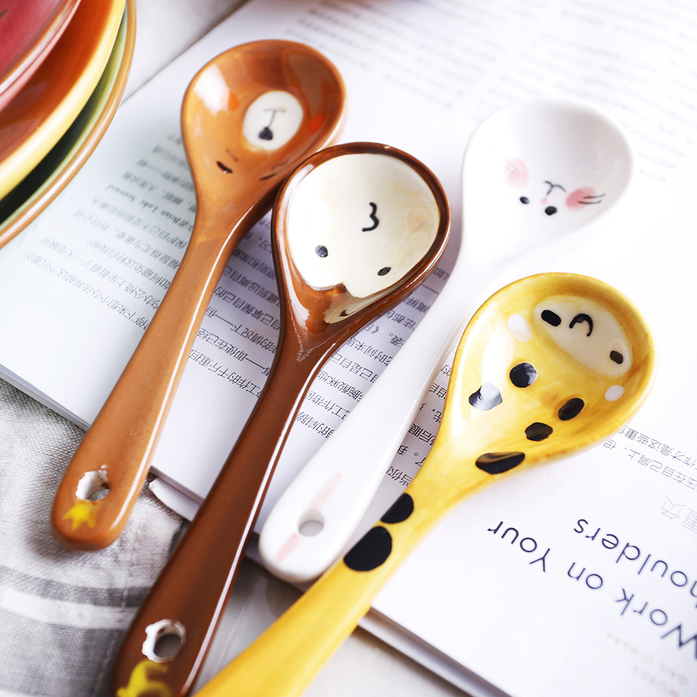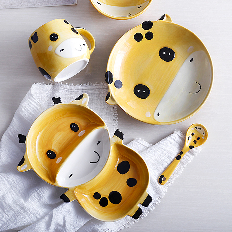 5pcs/set Hand-painted Ceramic Bunny Animal Salad Bowl Household Gift Box Coffee Cup Set