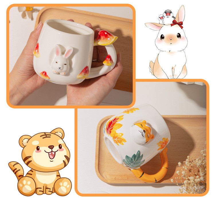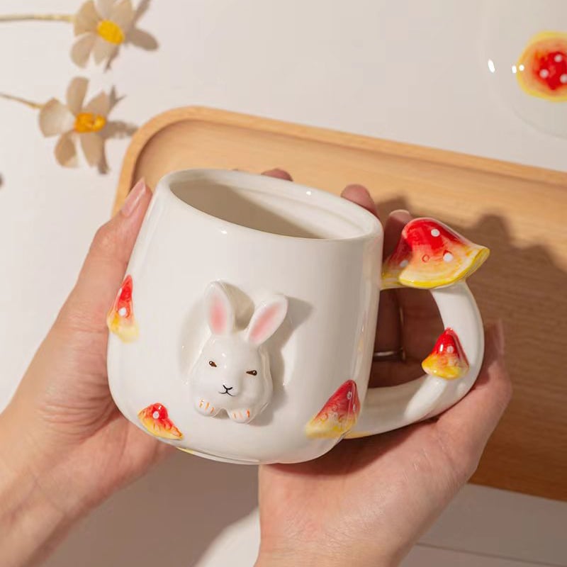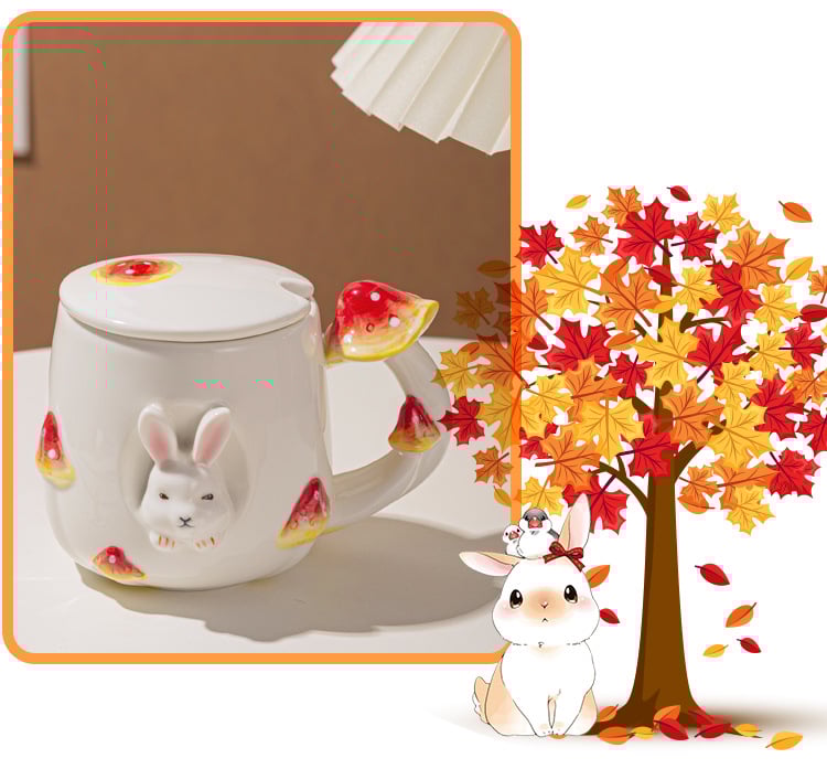 Cute Mushroom Rabbit Animal Coffee Mug With Lid