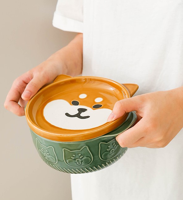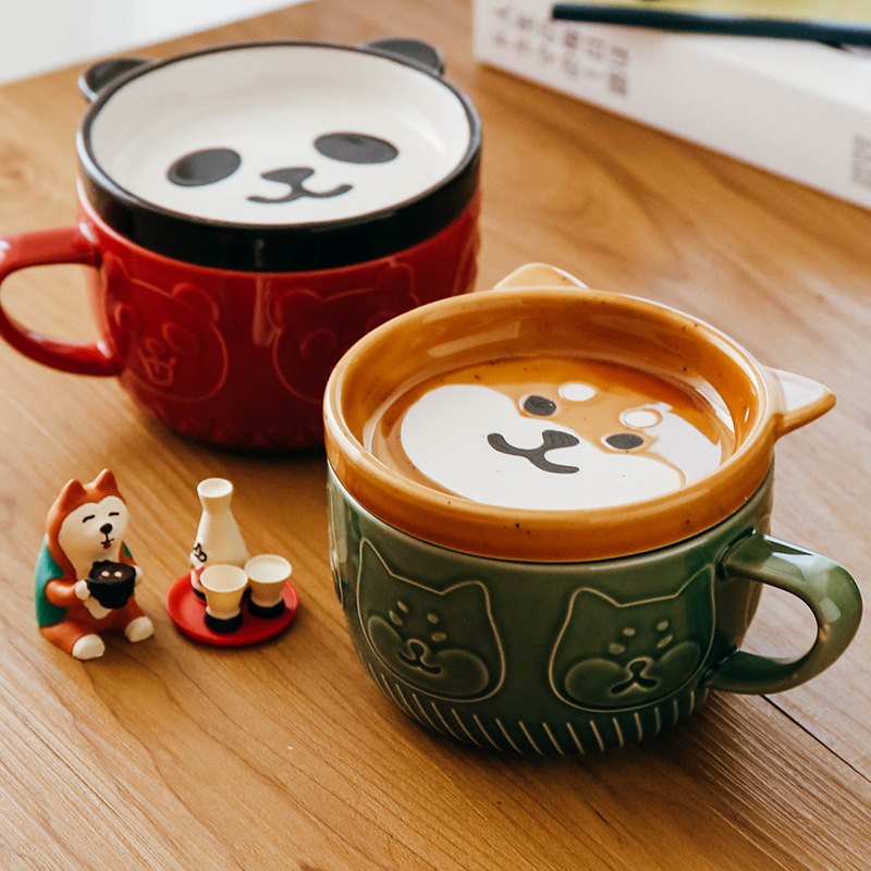 Japanese cartoon Shiba Inu panda ceramic cup with lid