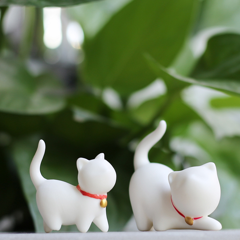 2pcs White porcelain lucky cats home decoration