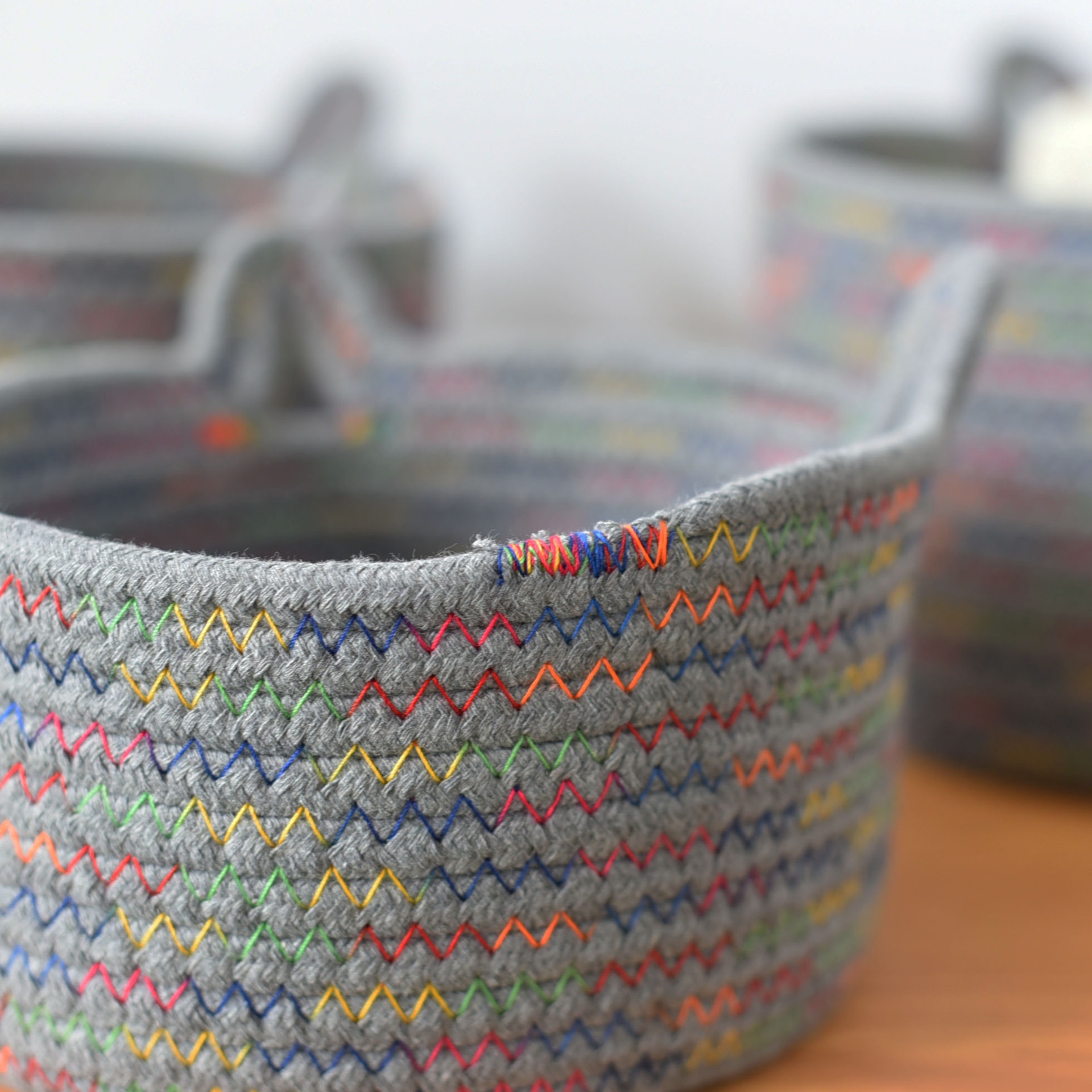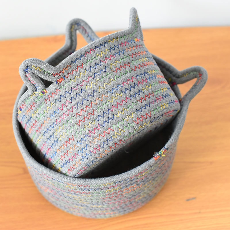 Cute Rainbow Woven Cat Ears Storage Basket Organizer