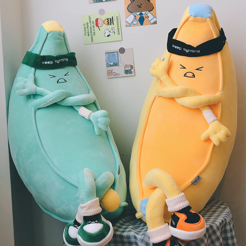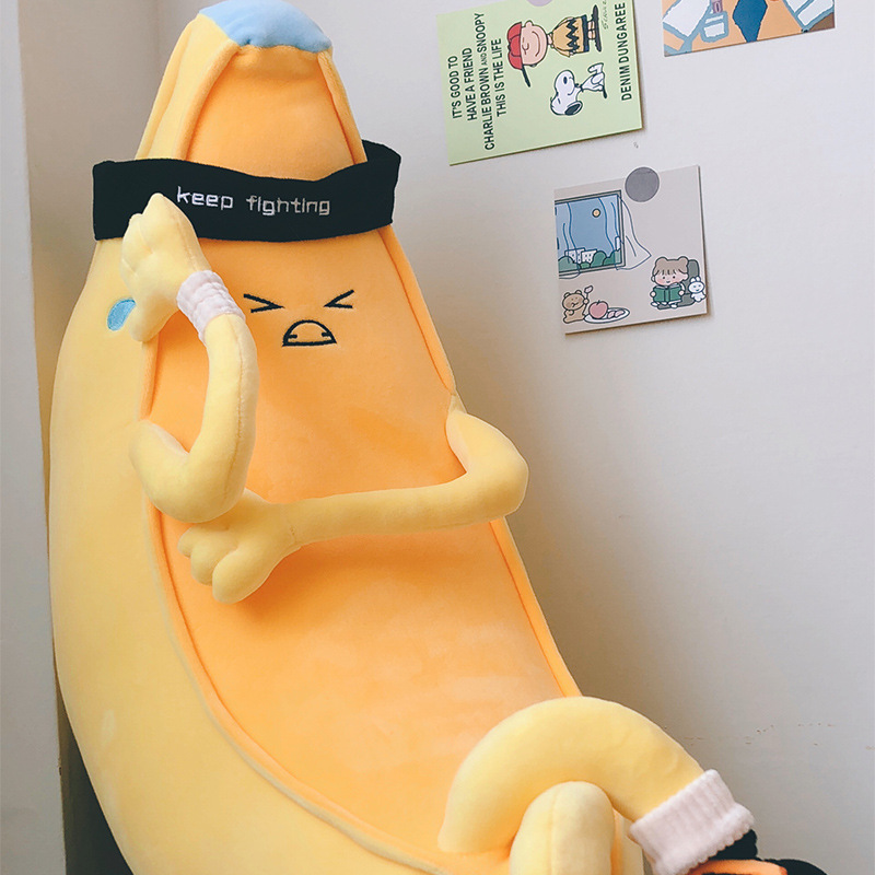 Cute Keep Fighting Work Out Banana Cushion Plush Toy