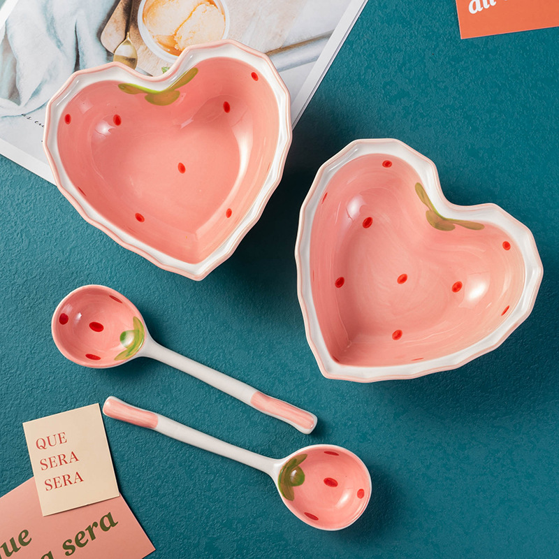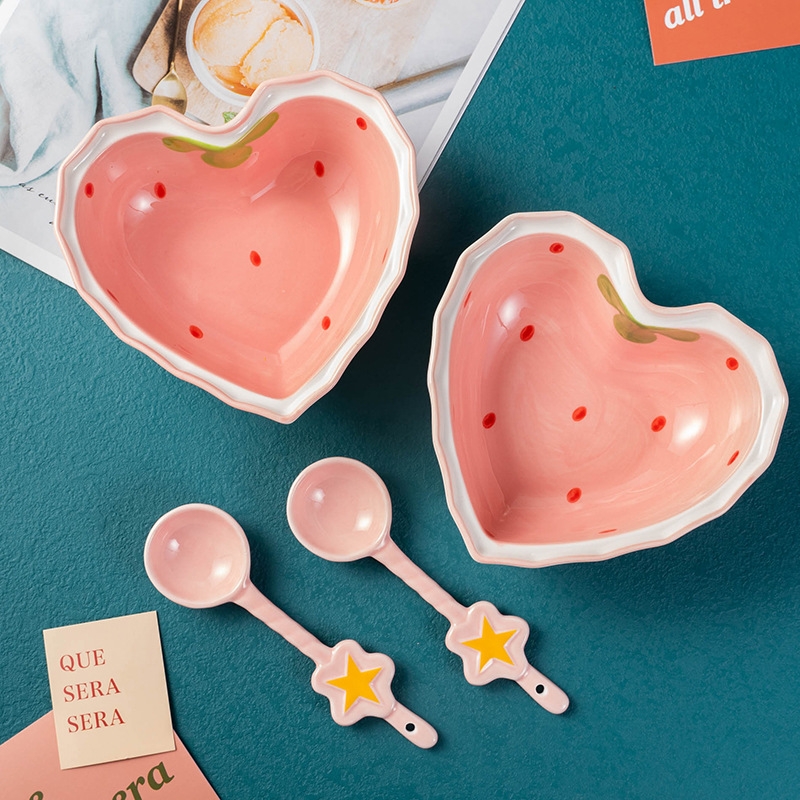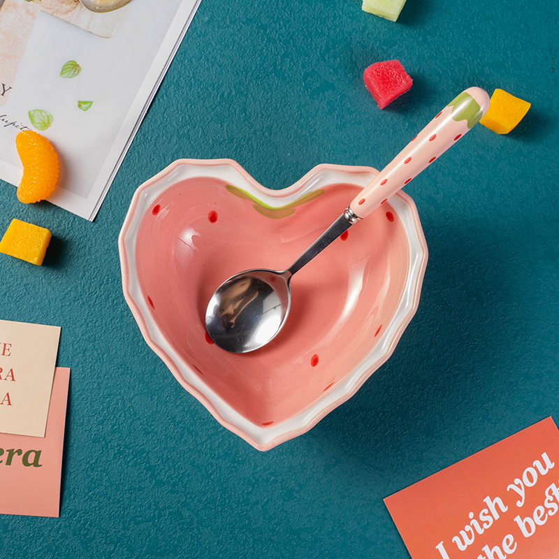 Heart Shape Strawberry Bowl And Spoon