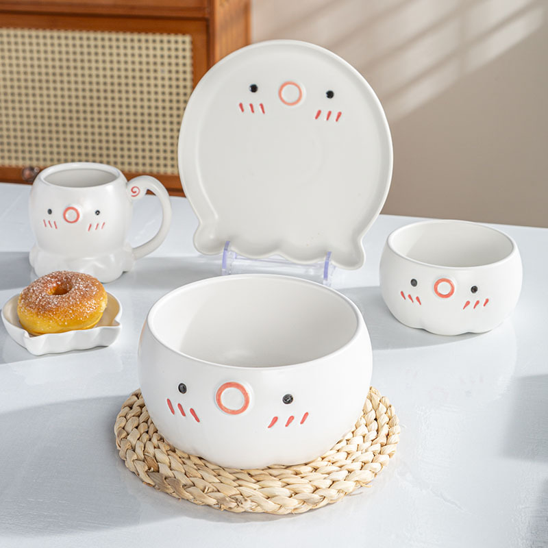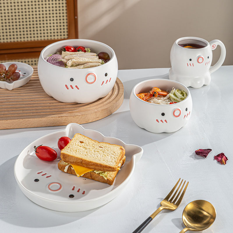 Material: Ceramic; Capacity: 400ml Package: 1mug/2bowls/1plate