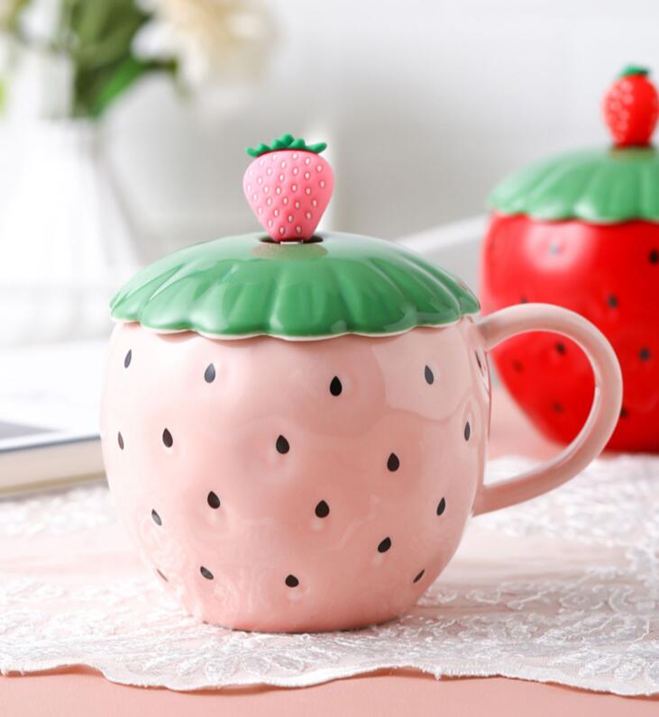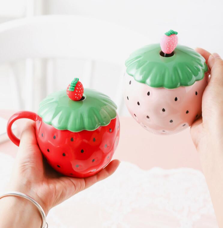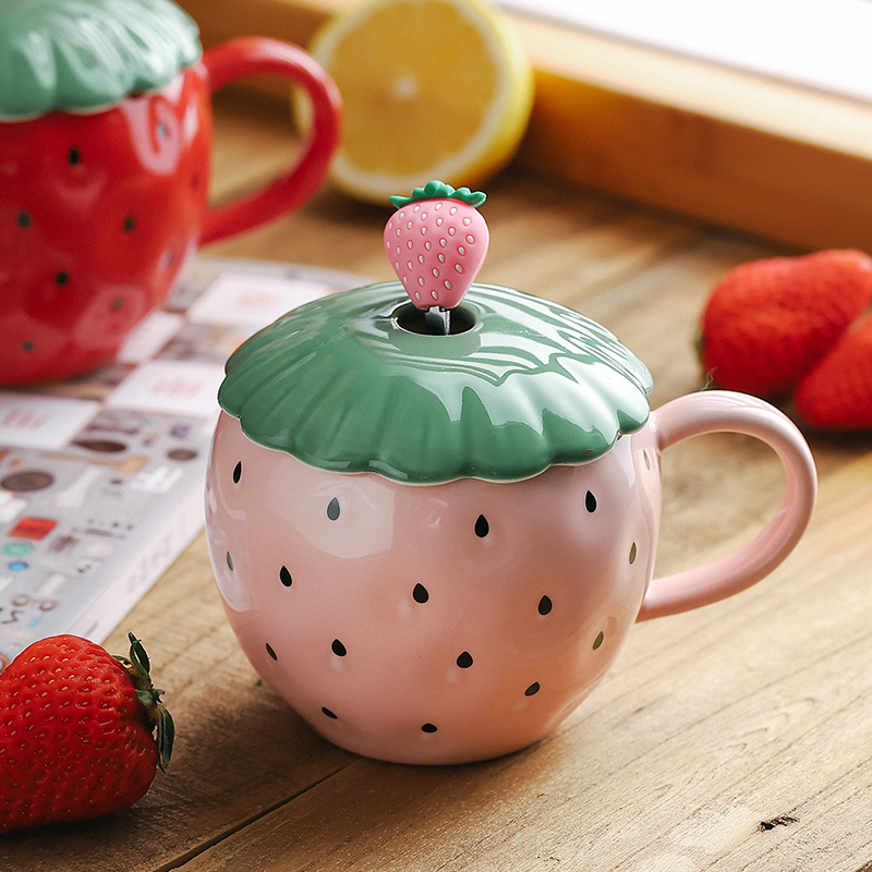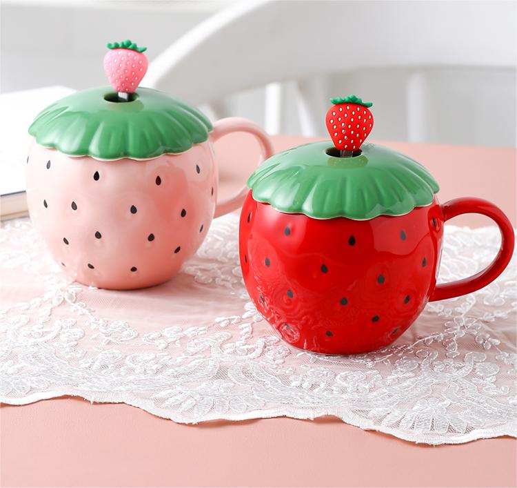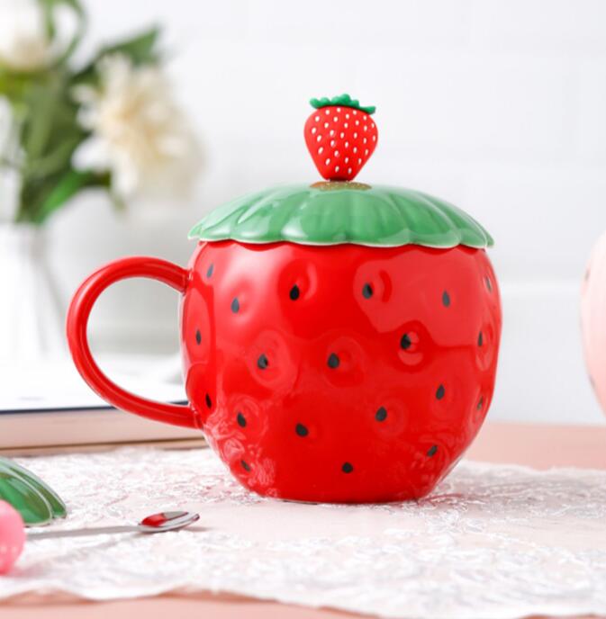 Big Strawberry Ceramic Mug With Lid And Spoon