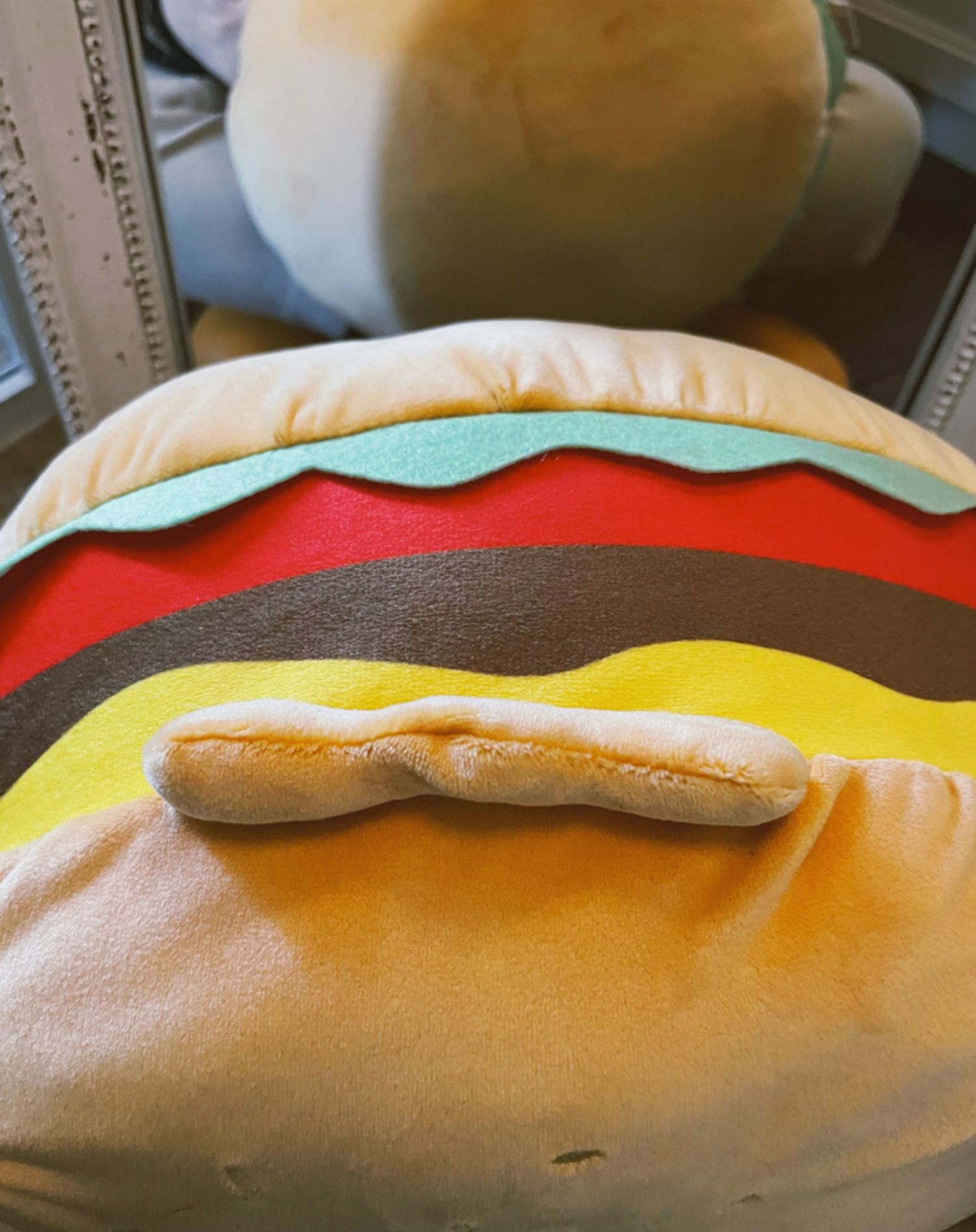 Introducing our Hamburger Dog Cushion Plush Toy - a delightful combination of comfort and cuteness. This plush toy takes the form of an adorable dog nestled within a hamburger bun, creating a whimsical and huggable companion. Crafted with soft, high-quality materials, it offers the perfect balance of comfort and charm. Whether it's for playtime, cuddles, or simply adding a touch of fun to your décor, this Hamburger Dog Cushion Plush Toy is sure to be a delightful addition to your life.
